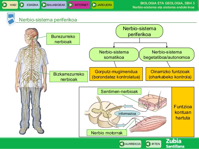 Nerbio-sistema zentralak eta nerbio-sistema periferikoak osatzen dute.